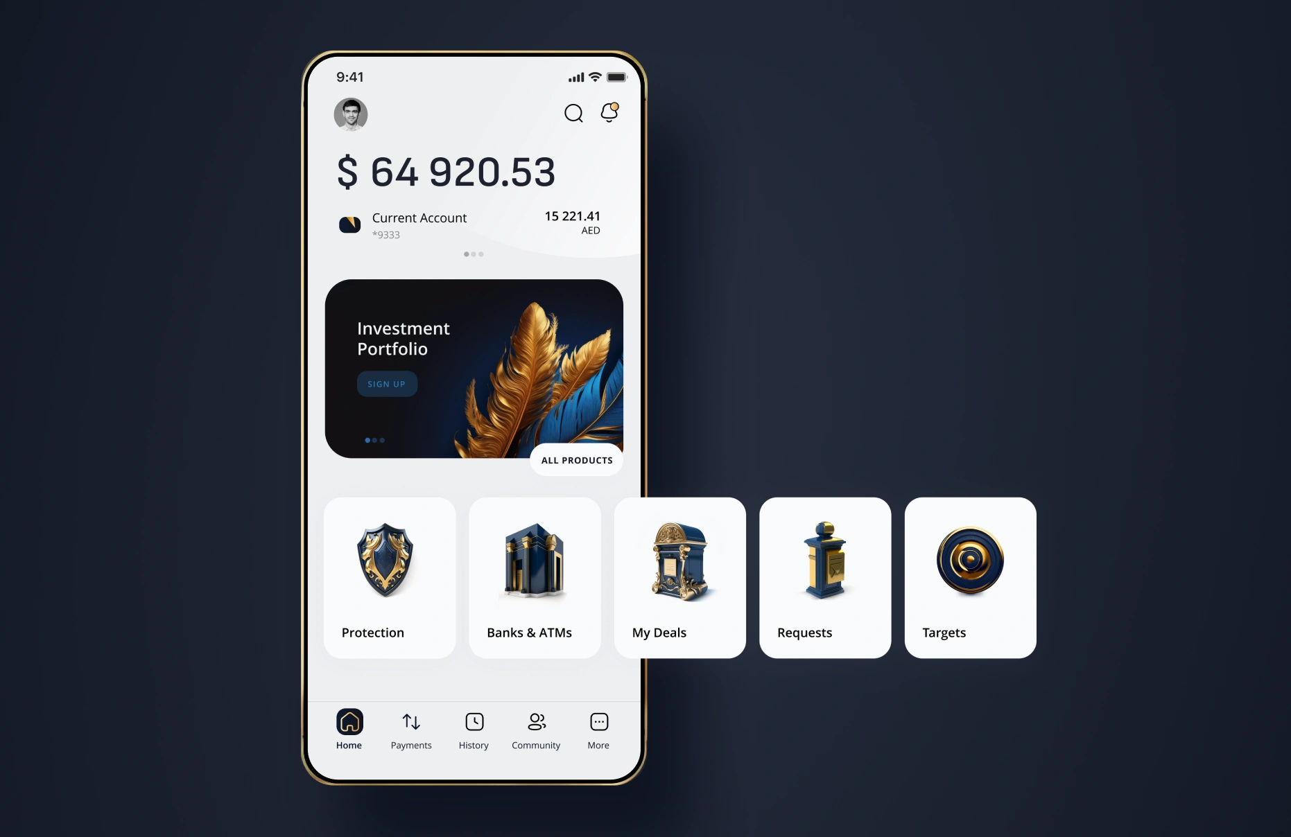 We created a visual code combining the internal processes of the development studio with the clean and informative interface with no frills. This is how we see the app for Emirates NBD. It contains visual style, a well-thought-out user flow, and gamification elements.